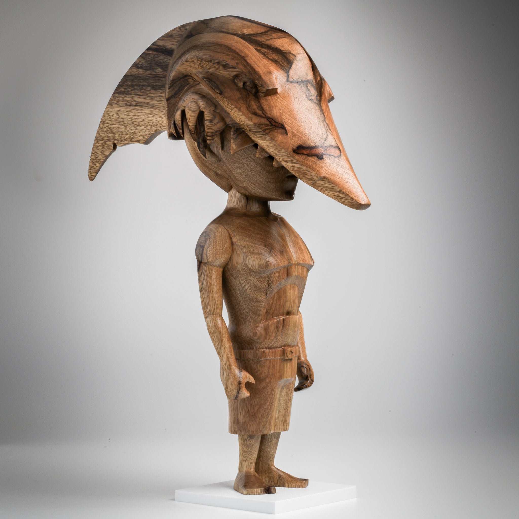 While making a wood sculpture starts with selecting cuts of wood based on their grain patterns, the resulting lines are always unexpectedly unique and make each piece truly one of a kind.