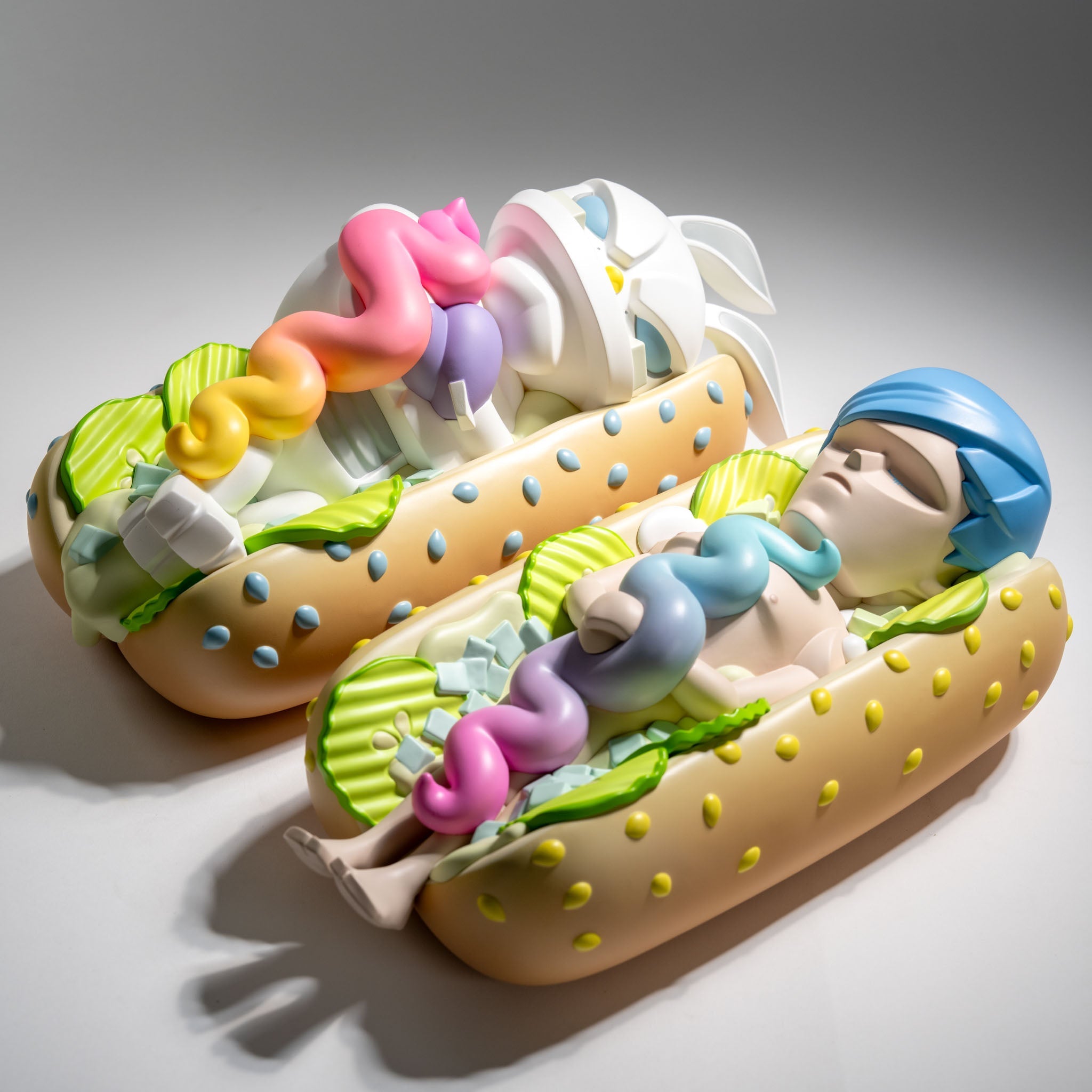 This ongoing storyline comprises over a dozen vinyl sculptures and continues to be our most elaborate sculpture series.