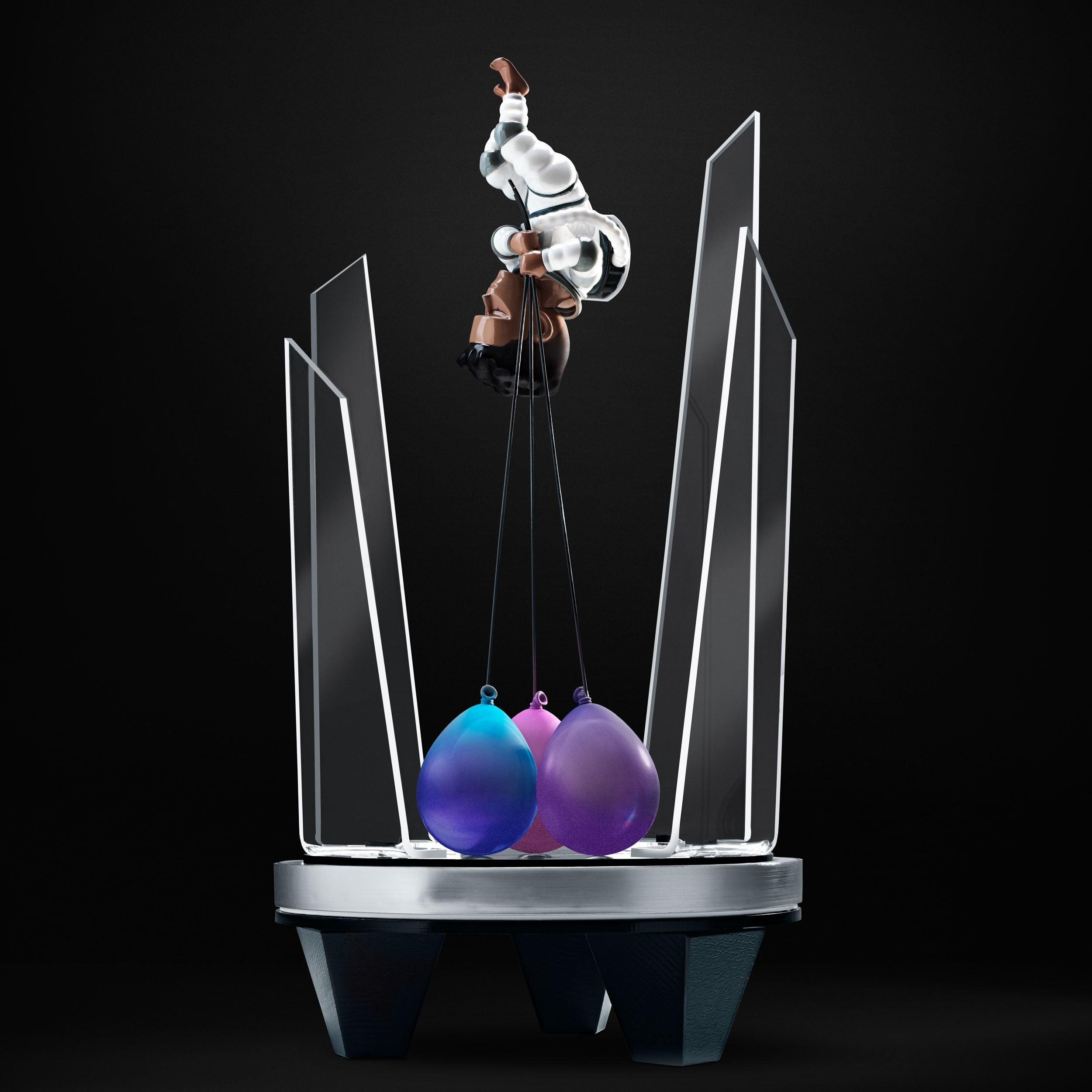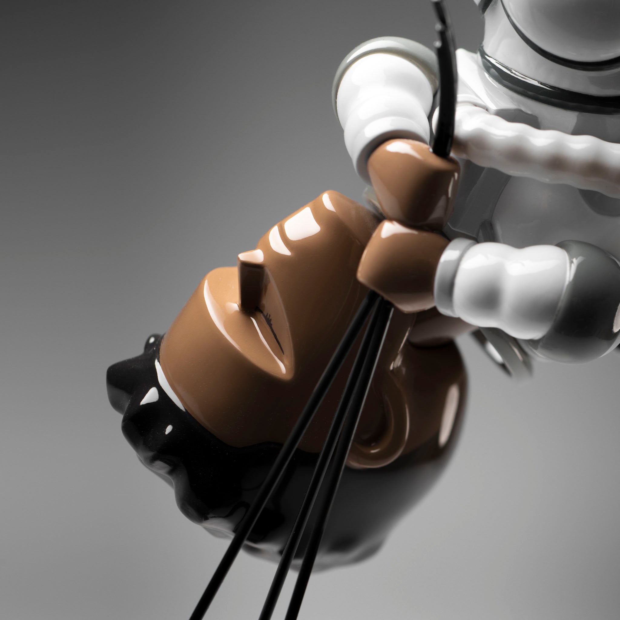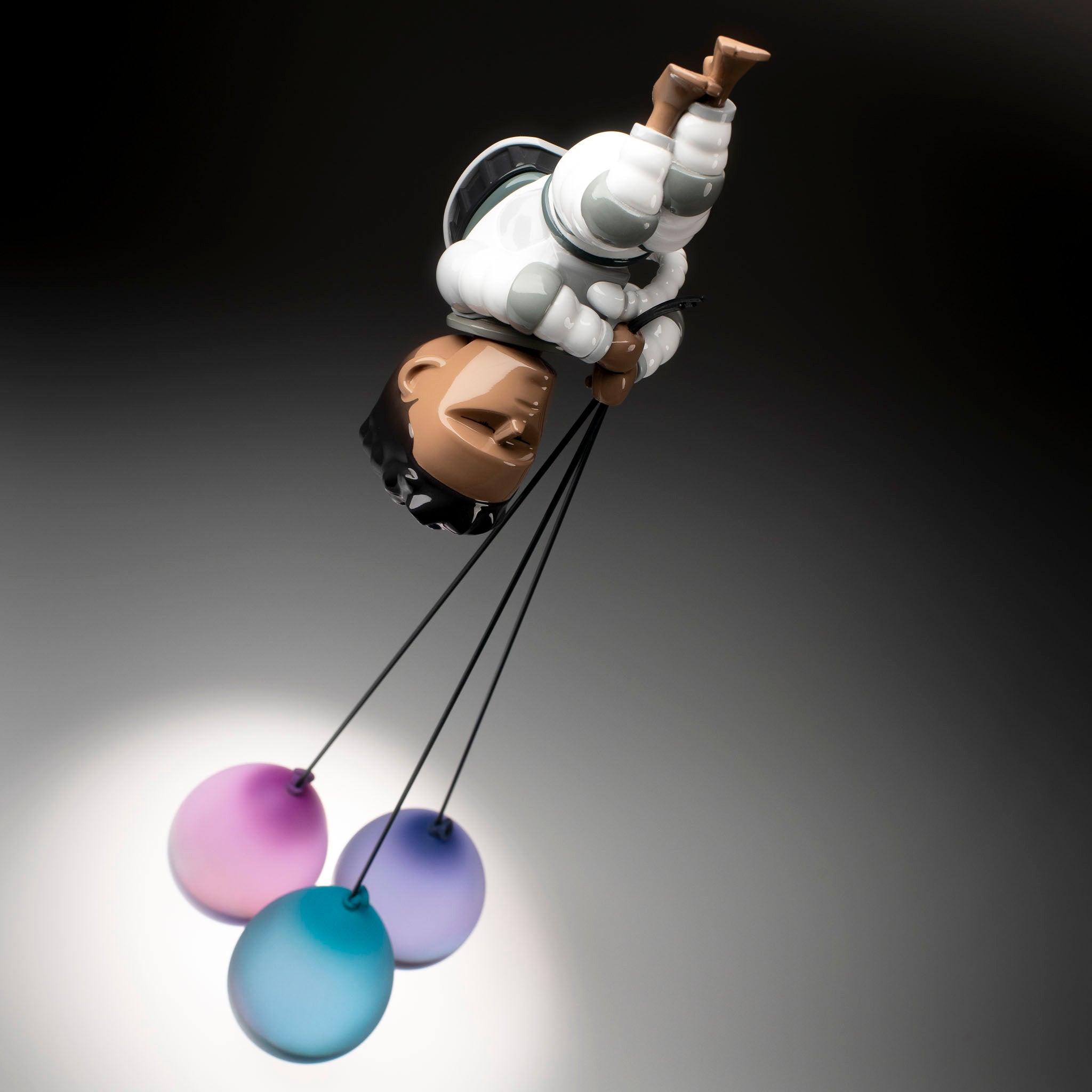Our space explorer has dared to let go of everything he knows and finds himself in a world where nothing is as he expects it to be. Gravity no longer makes sense in this new place, making him wonder what other fundamental parts of life could work in ways he never imagined. The sculpture depicts the transformative moment of leaving behind everything he thought to be true to uncover new dimensions of life itself.