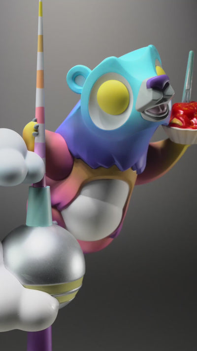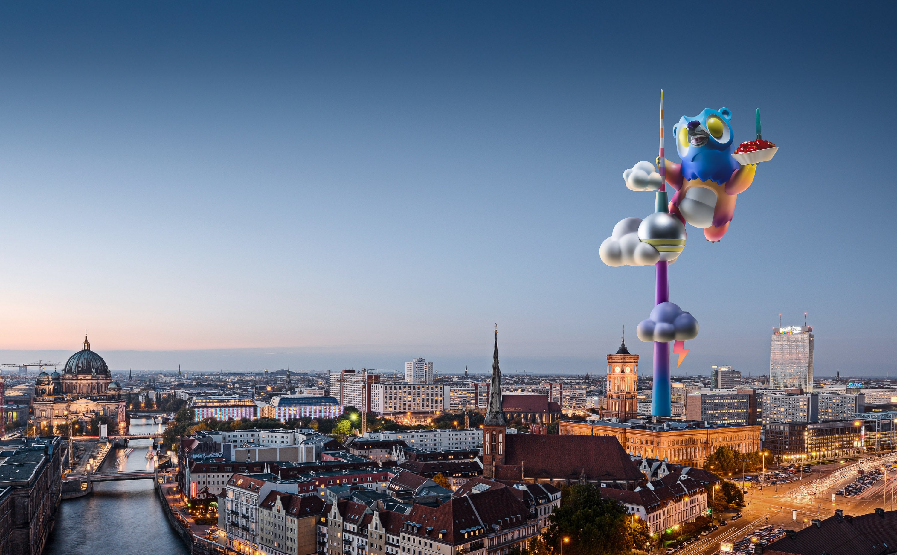 Available exclusively at the Berlin TV Tower, this unique handmade figure comes in three unique editions. Eine Berliner Ikone finds Bärlicious as a colorful statement for your home. Berlin auf die Hand depicts Bärlicious diving into Berlin's most famous street food, curry sausage. And with Vom Sphere sieht man Alles, Bärlicious hangs off Sphere, Tim Raue's iconic new restaurant at the top of the tower.
