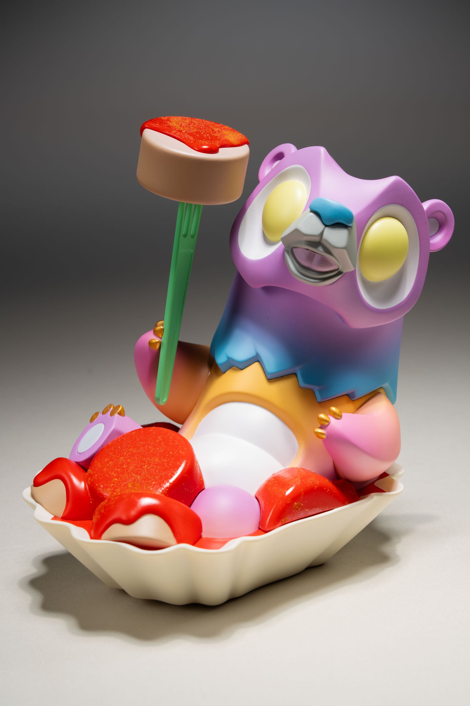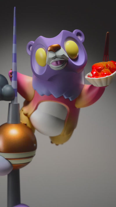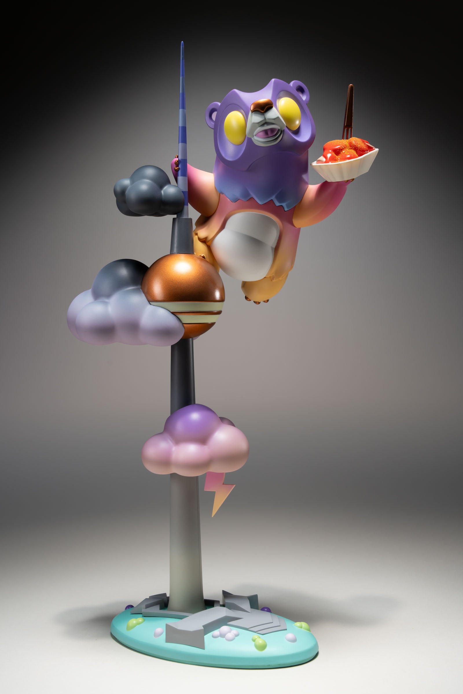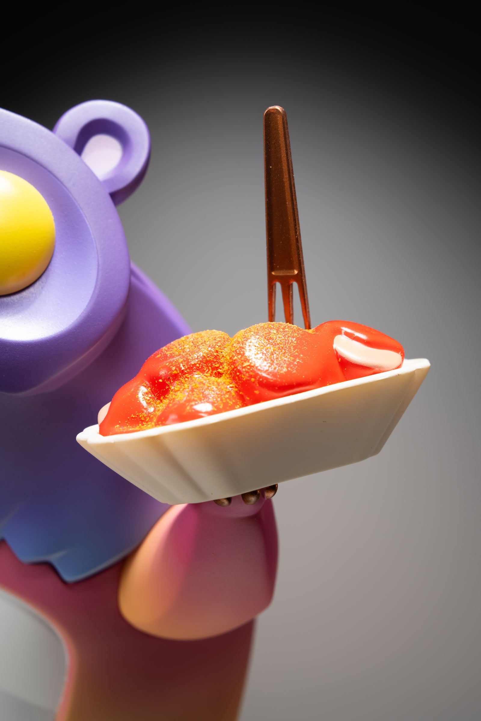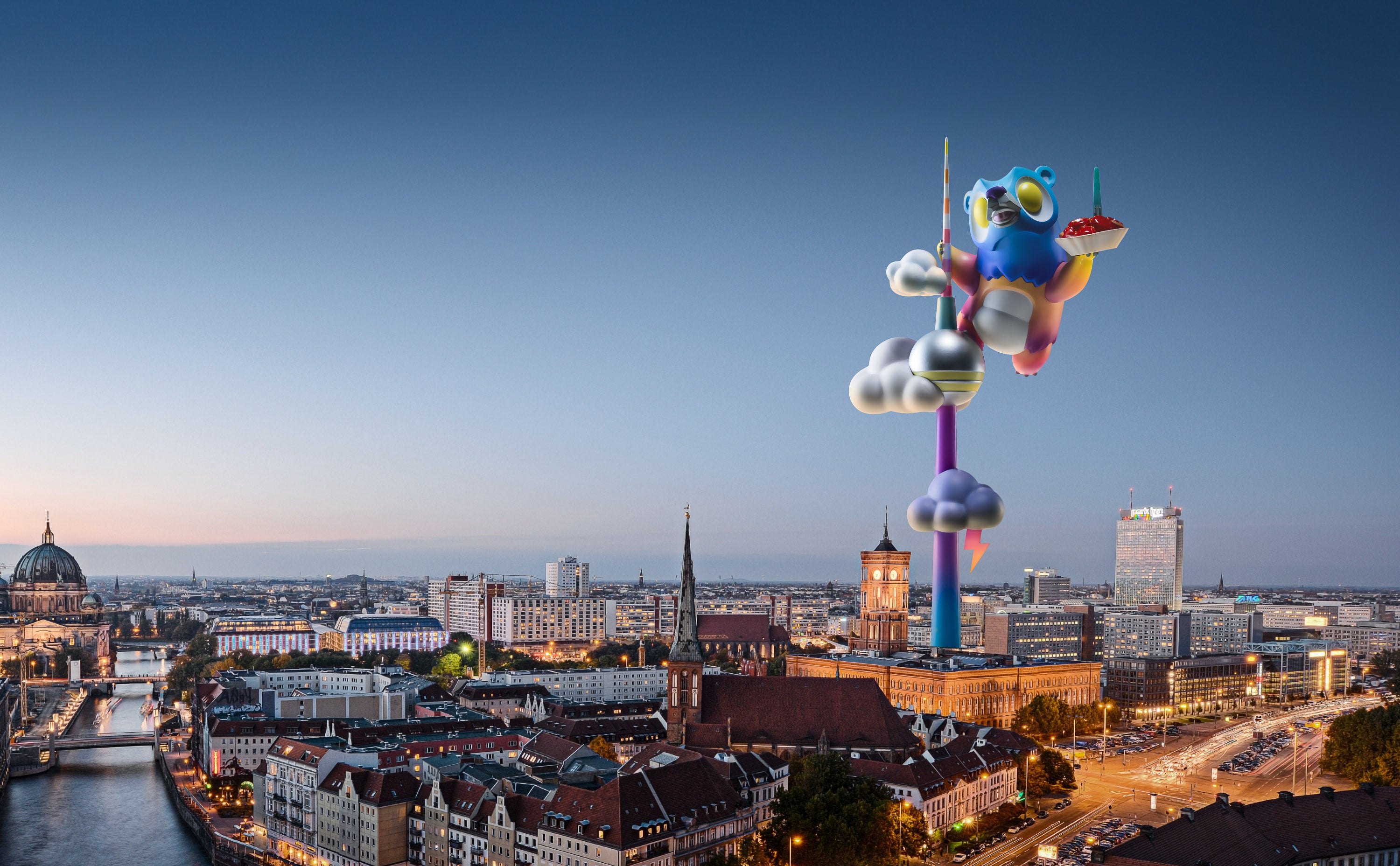 Available exclusively at the Berlin TV Tower, this unique handmade figure comes in three unique editions. Eine Berliner Ikone finds Bärlicious as a colorful statement for your home. Berlin auf die Hand depicts Bärlicious diving into Berlin's most famous street food, curry sausage. And with Vom Sphere sieht man Alles, Bärlicious hangs off Sphere, Tim Raue's iconic new restaurant at the top of the tower.