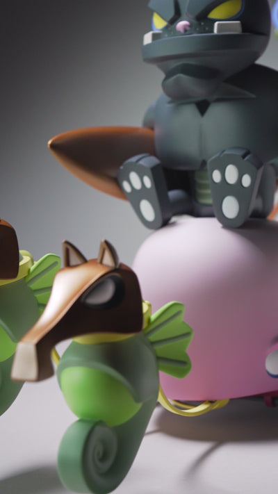 paw!'s seahorses bubble up into the air and lead the way while a golden Nism follows dutifully behind, hoping to find his way back to the waters where he is from. He can still remember what it was like to somersault in its salty currents beneath the rare pink whales. It's just a little further, and soon he will be home.