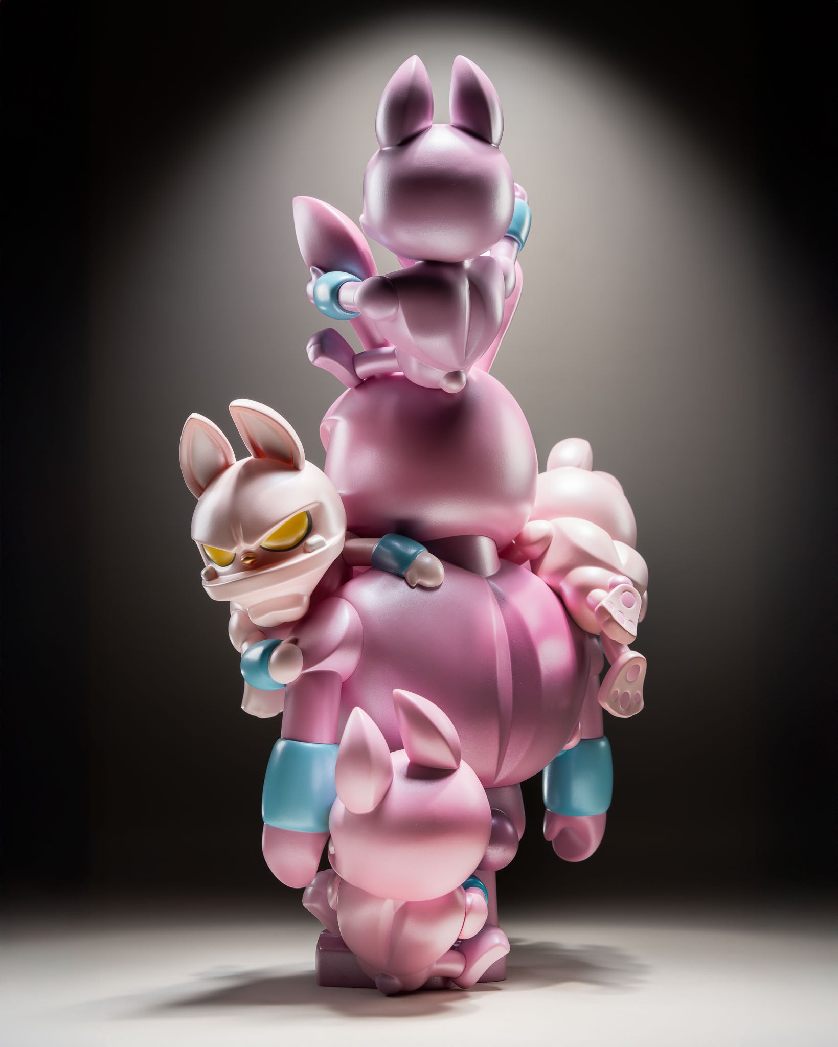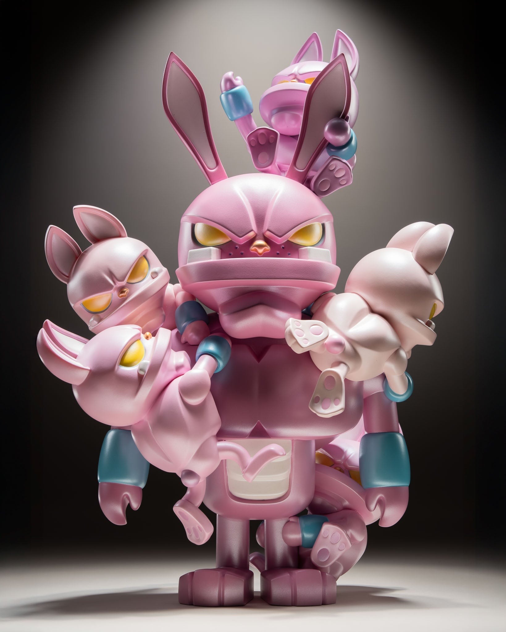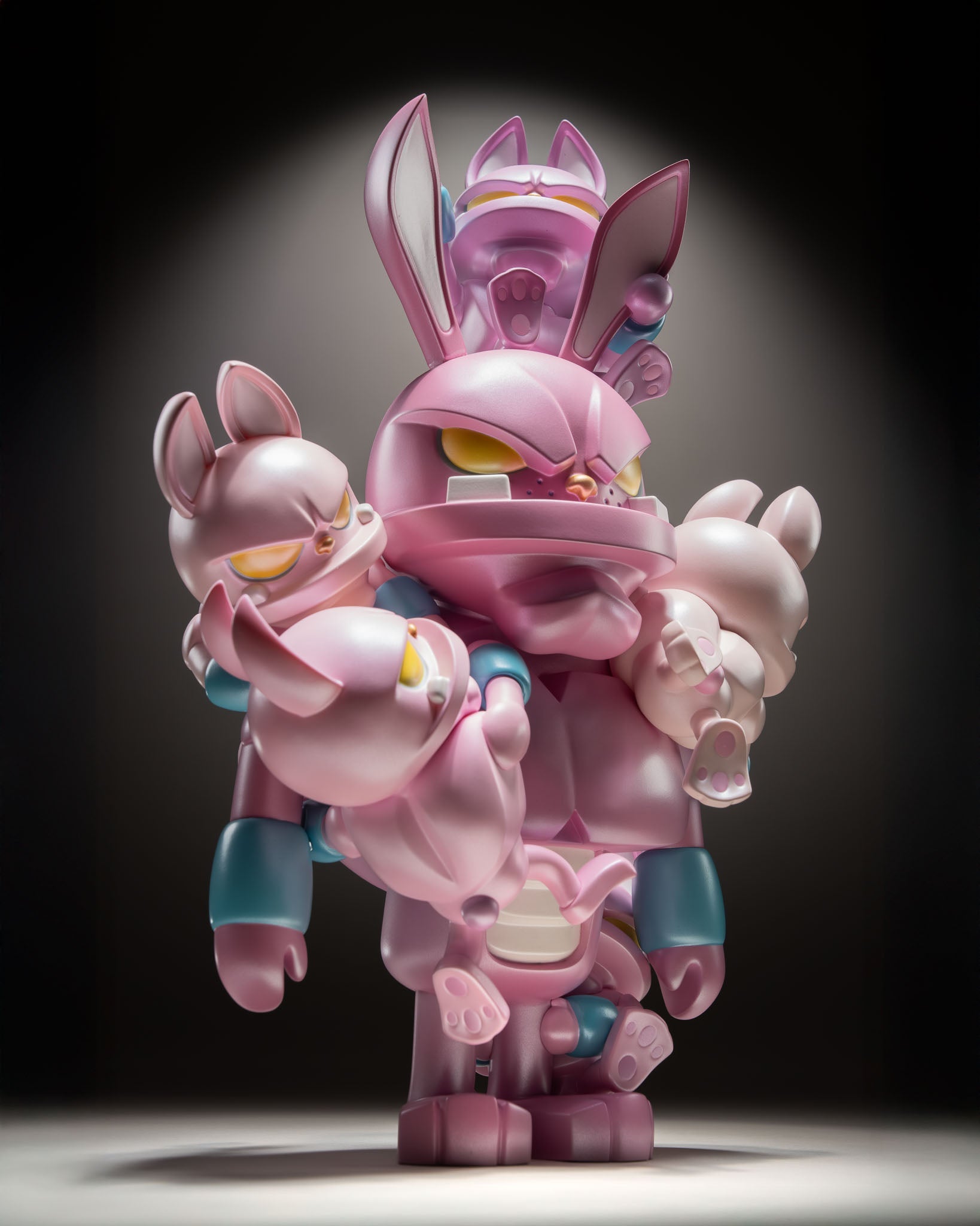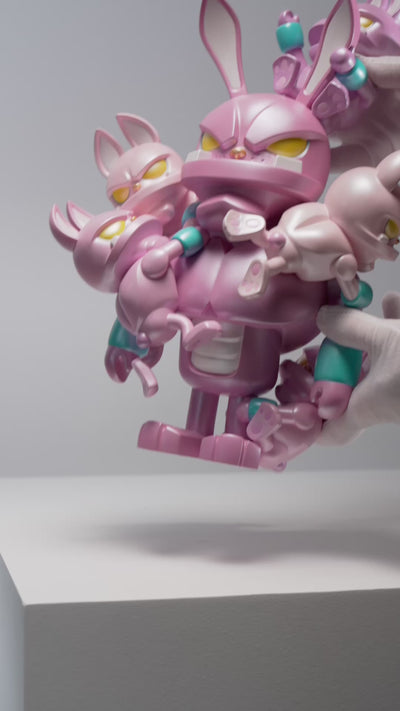 This unique 15" | 38 cm handmade figure comes in two new exhibition-exclusive editions. Too Many Storms [199 pieces] depicts the happiness inside paw! fading as a swarm of worries draws the color out of his gray soul. The pink Pressure Cooker – Extra Hot! [Pearl, 99 pieces] finds paw! with a deluxe pearl coating, giving the sculpture a gentle shimmer as he reaches his boiling point.