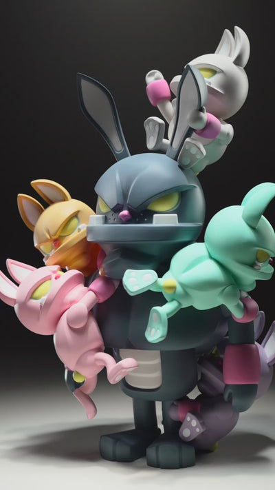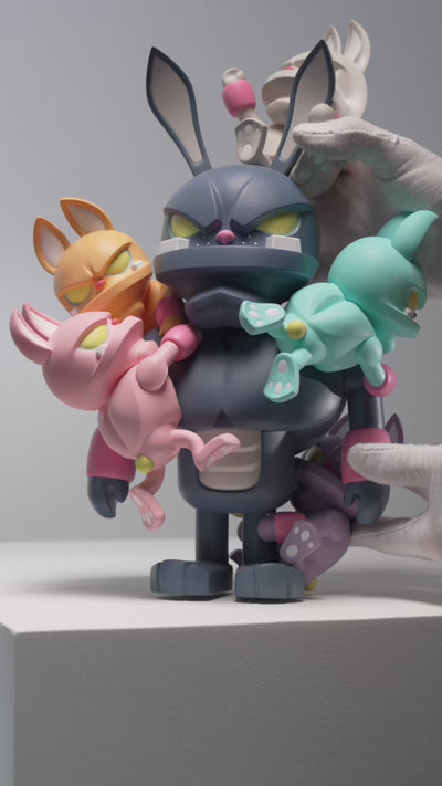 In Too Many Storms a radiant spectrum of awful paw!fuls circle paw! like a typhoon, draining all the color out of the towering gray monkeyrabbit. With a classic matte finish, Too Many Storms has the traditional look of our vinyl releases and matches other sculptures in your collection.
