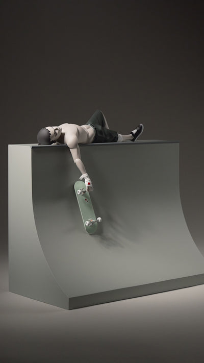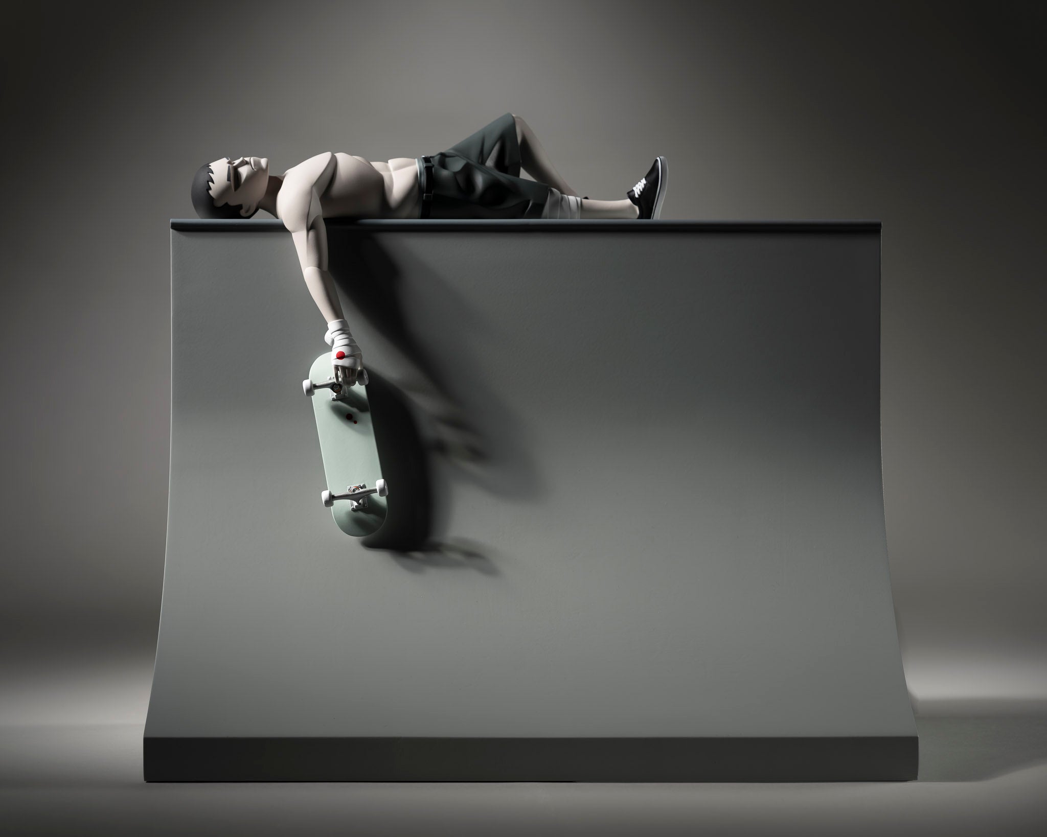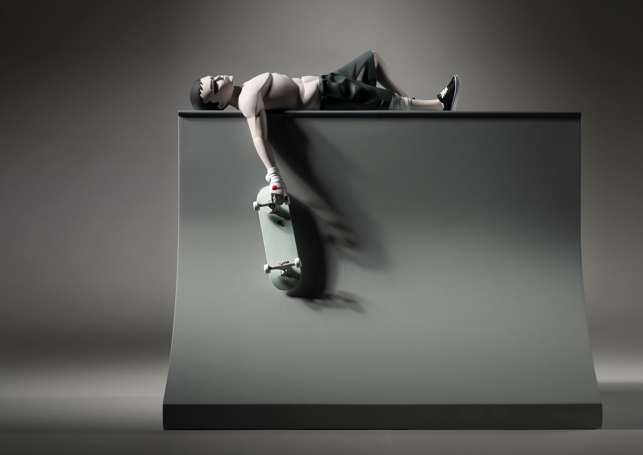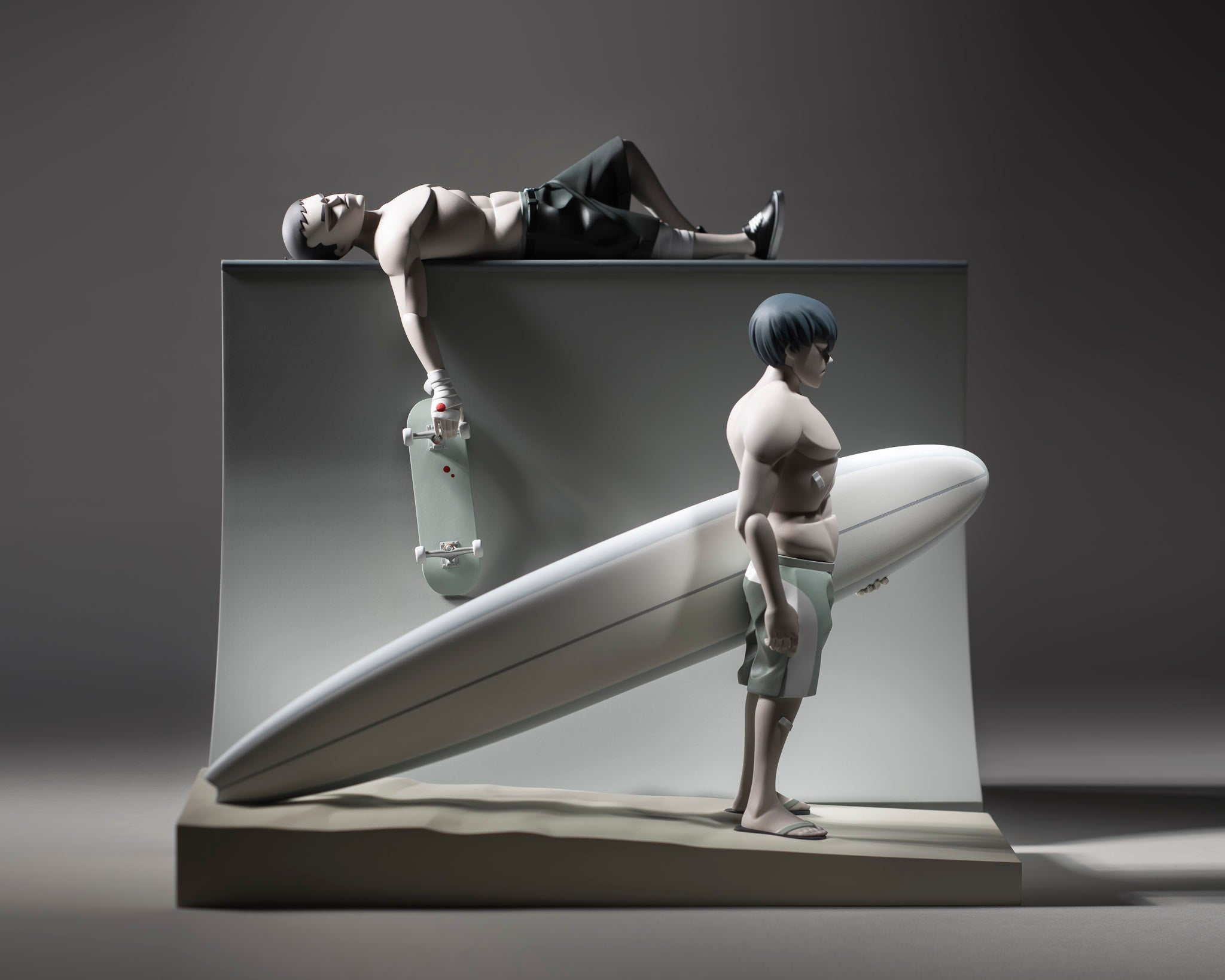 Empty Spaces becomes complete when both sculptures are displayed together. Intended to complement each other, Fluid and his surfboard fill the blank canvas of Flake's skate ramp like a puzzle piece, and an empty space becomes whole.